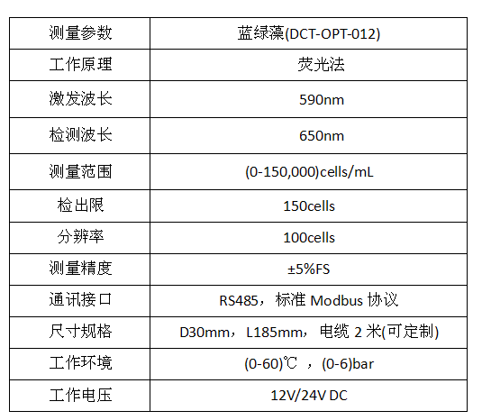 DCT-OPT-012是一款采用RS485通訊接口和標(biāo)準(zhǔn)Modbus協(xié)議,自帶清洗刷的藍綠藻智能電極?;谙喔蔁晒鈾z測技術(shù),具有選擇性好,抗干擾強、靈敏度高、無需預(yù)處理、測量快速等優(yōu)點。隨機附送專業(yè)操作軟件,具有校準(zhǔn)、記錄、分析、診斷等功能。